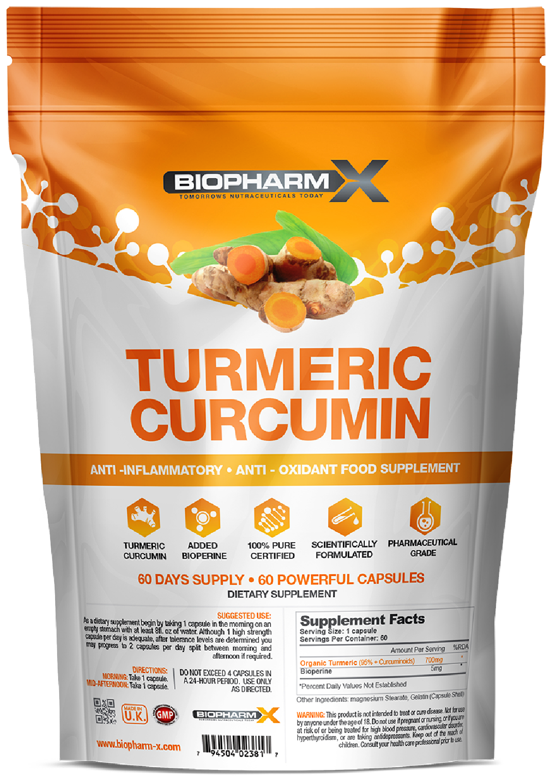 When choosing a Turmeric Curcumin supplement it is important that you select high quality standardised extract for maximum effects. Our premium Turmeric complex features pharmaceutical grade Turmeric along with pure piperine. When combined the bioavailability and absorption of Curcumin is increased by up to 2000%. Enabling each BioPharmX Turmeric capsule to go beyond the capabilities of any other Turmeric product!