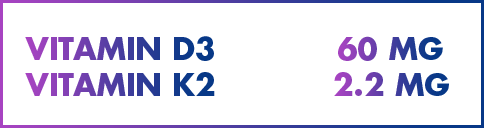 Vitamin D3 60mg (Providing 5000iu of Vitamin D) Vitamin K2 2.2mg (Providing 100ug Vitamin K2)