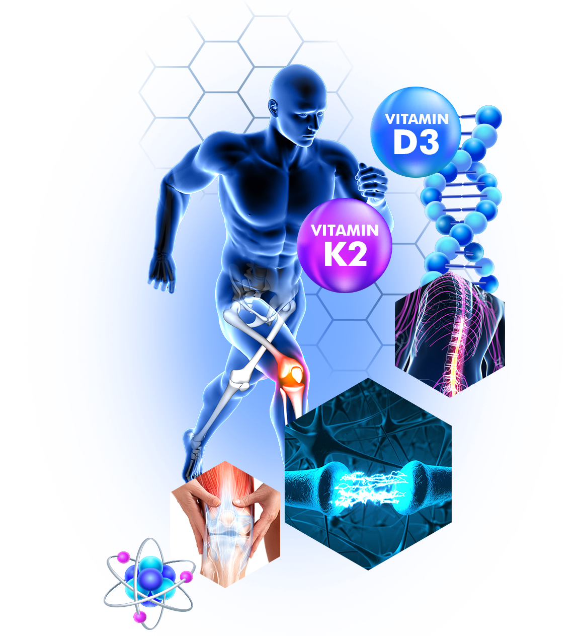 In addition their primary benefits, recent studies suggest joint supplementation of Vitamin D and Vitamin K2 go beyond their well-established roles and contribute to: